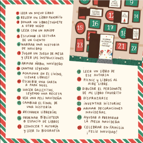 Calendario de Adviento con actividades para disfrutar desde el 1° hasta el 25 de Diciembre. Cada día, una nueva ventana para abrir y descubrir una propuesta diferente: paseos literarios, actividades de lectura, escritura y momentos únicos en familia.
