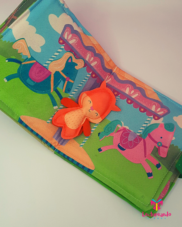 Este libro cuenta la historia de un zorrito que le encanta ir a la plaza, tirarse por el tobogán, ir a la calesita, hamacarse y hacer un picnic al finalizar el día. Viene con el personaje que interactúa en cada página.