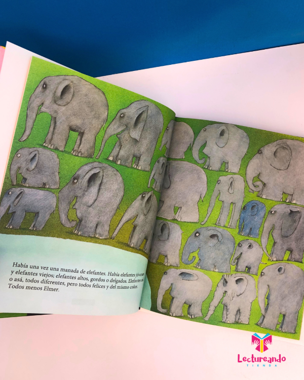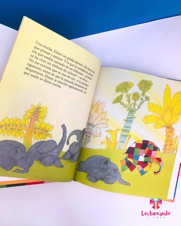 Elmer no es como los otros elefantes de su manada. Aunque parezca difícil de creer, es un elefante de mil colores: verde, azul, blanco, rosa, amarillo... ¡Impresionante!, ¿verdad? Pero a Elmer no le hace ni pizca de gracia ser así, más bien está harto de ser distinto, así que un día decide escaparse de la manada y buscar un remedio para poder tener el mismo color de piel que los demás...