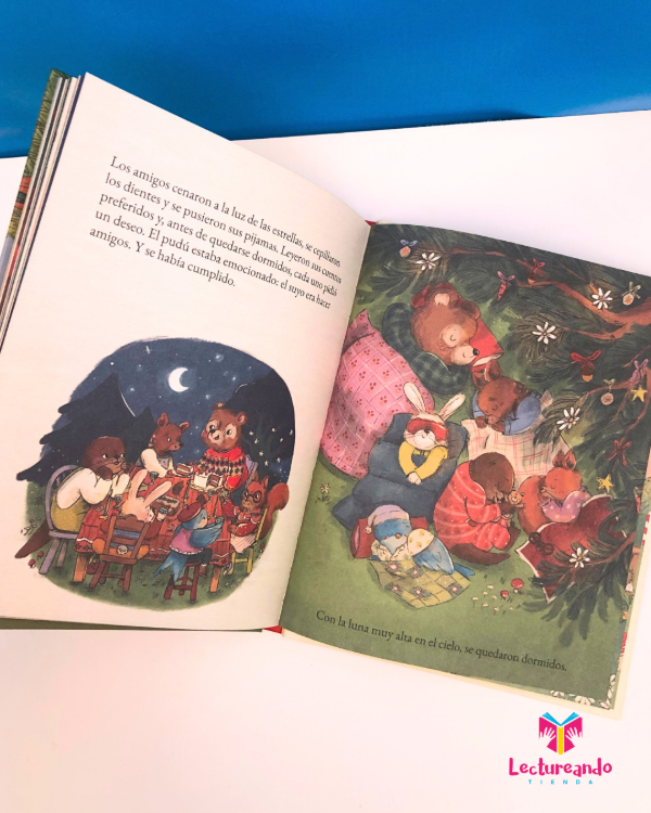 ¡Llega la noche más esperada del año! Todos los animalitos del bosque se preparan para celebrar la Navidad. La ardilla, la nutria, el pájaro, el conejo y el oso hicieron los adornos que van a decorar El Gran Árbol de Navidad, la estrella de la noche. Y, por supuesto, los espera una pijamada especial... Pero algo, más bien, alguien, va a sorprenderlos de camino al Gran Árbol.