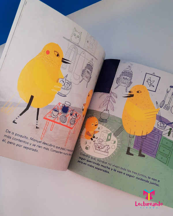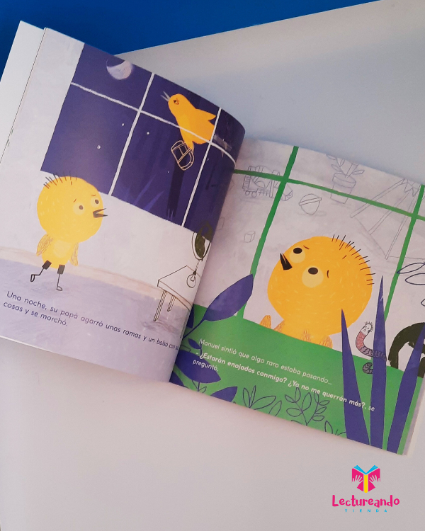 Manuel busca la forma de entender por qué su papá se fue a vivir a otro nido y descubre que, aunque no vivan los tres juntos, papá y mamá lo van a seguir queriendo mucho y lo van a seguir cuidando juntos.